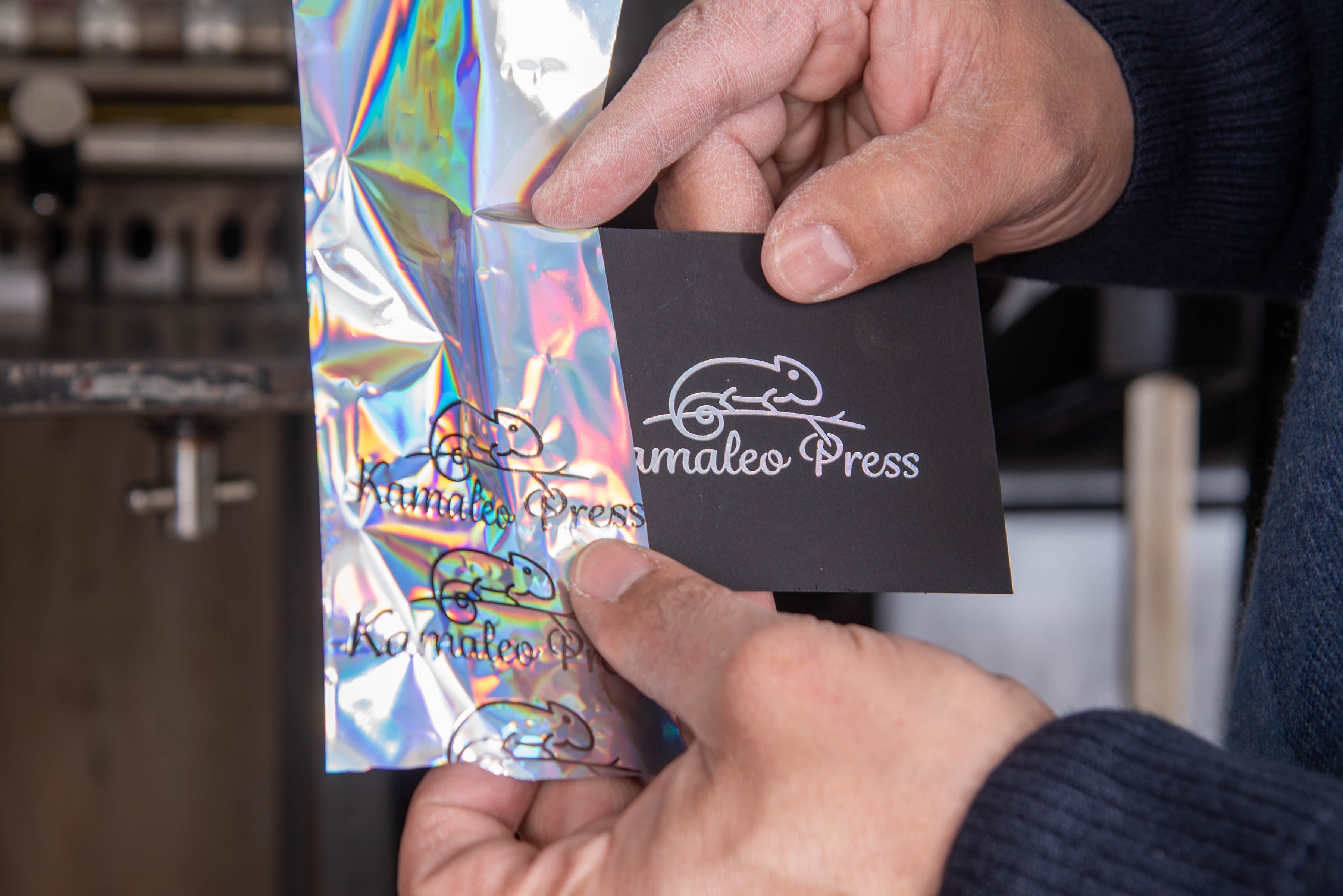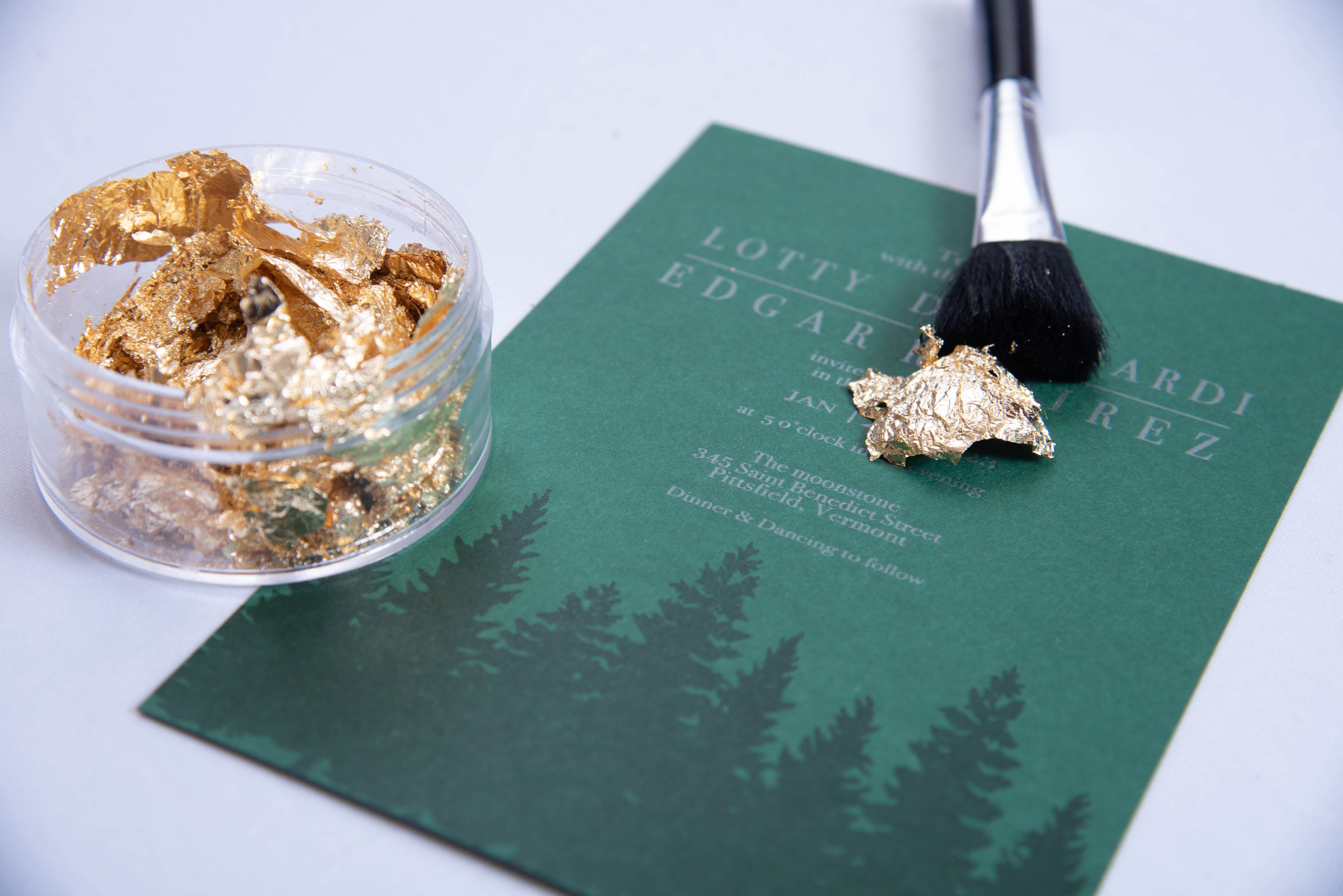 Foil stamping is the process in which image is transferred from a metal plate onto the paper. The metal plate is pressed into the foil film, and the heat and pressure seals the foil onto the paper. The setup for a foil printing process can be a little more expensive and require some time to set up, the results of the finished product can be stunning. Choose from the variety of color and finishes.